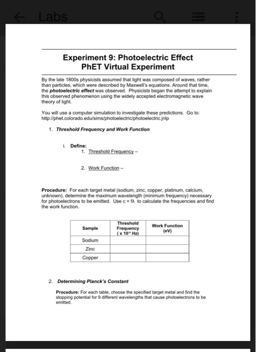 Beyond labz answer key beyond labz virtual with the ongoing legalization of cannabis products throughout the u. The photoelectric effect is an instantaneous phenomenon. The table lists the only available metals and their work functions. Explain why the photoelectric effect cannot be explained by classical physics. • dpifhfroatcoteiolenctarnicdeinffteecrtference • wave diffraction.